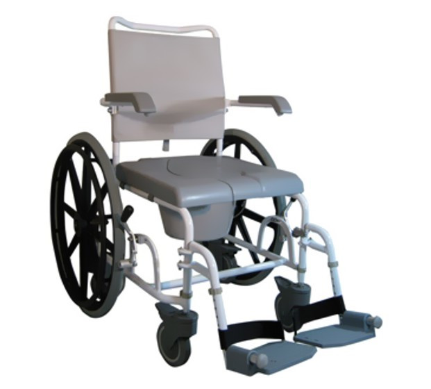 Kis és nagy kerekekkel elátott tusoló- és fürdetőszék. 4 kiskerék és 2 nagykerék egyaránt tartozéka a csomagnak. A szék állítható magasságú 4 fokozatban.br /