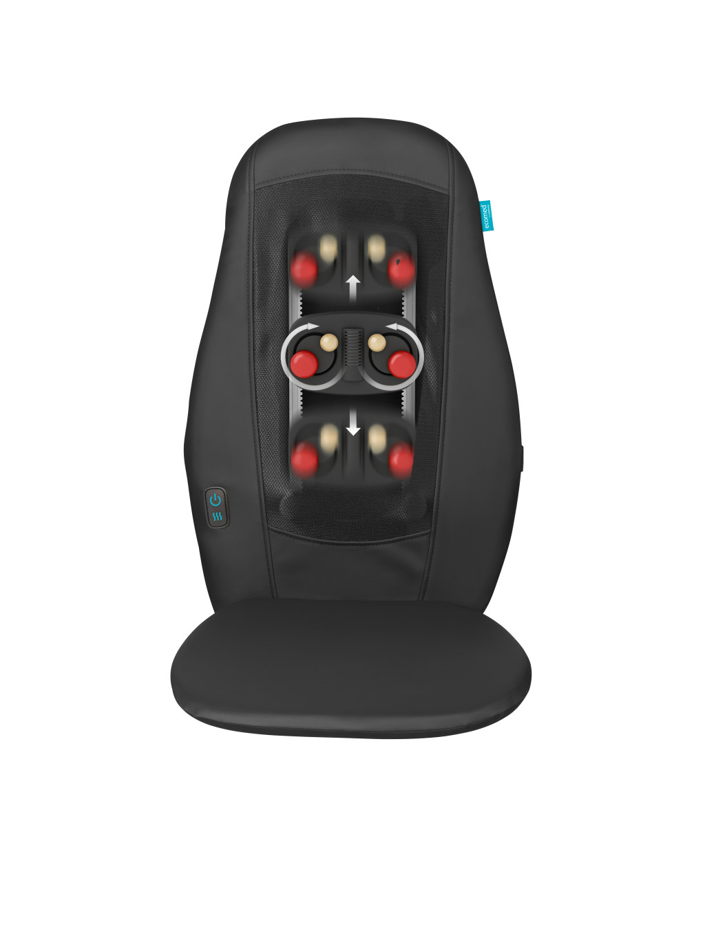 Az MC-15E Shiatsu masszázsülésbetét 4 forgó masszírozófejjel rendelkezik, amelyek pihentető masszázst nyújtanak a gerinc mentén fekvő hátizmoknak. A megfelelő ülésmélység és a magas háttámla révén ez a kiegészítő rendkívül sokoldalúan használható. A masszázsülésbetét pántos rögzítéssel bármilyen üléshez biztonságosan rögzíthető. A felhasználóbarát, egygombos vezérlőpanel lehetővé teszi a fűtési funkció opcionális bekapcsolását.