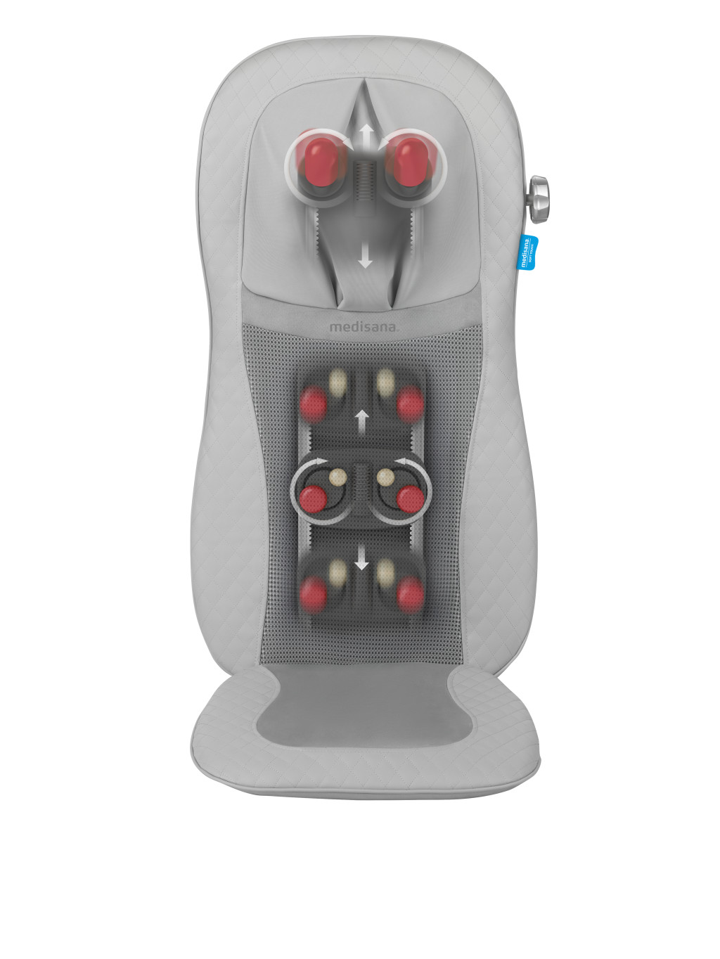 A Medisana MCG 810 Comfort Shiatsu masszázsülésbetét nyugtató shiatsu masszázst nyújt a hát teljes területén. Három masszázs zóna közül lehet választani: teljes, felső vagy alsó hát, valamint precíz pontmasszázs. A praktikus távirányítóval bekapcsolható egy további, különálló, állítható magasságú nyakmasszázs is, amely kifejezetten a nyak igényeire lett kialakítva, és kifejezetten ellensúlyozza a feszültséget ezen a területen. Puha, rugós masszázsfejek gyengéden masszírozzák a nyak területét