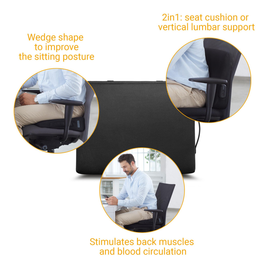 • Aktívan stimulálja a hátizmokat, elősegíti a vérkeringést és megakadályozza a gerinc helytelen testtartását