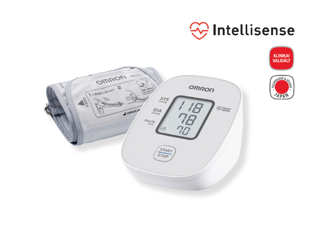Intellisense mérési technológia - Minden OMRON vérnyomásmérő szabadalmazott logikai algoritmussal rendelkezik, vagyis a mandzsettafelfújás személyre szabott, fájdalom nélküli, szemben a hagyományosautomata vérnyomásmérőkkel.