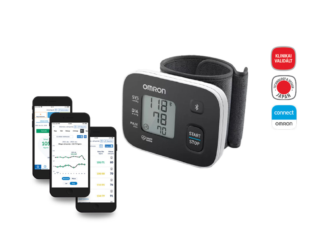 OMRON RS3 Intelli IT Intellisense csuklós okos-vérnyomásmérő Bluetooth adatátvitellel HEM-6161T-E